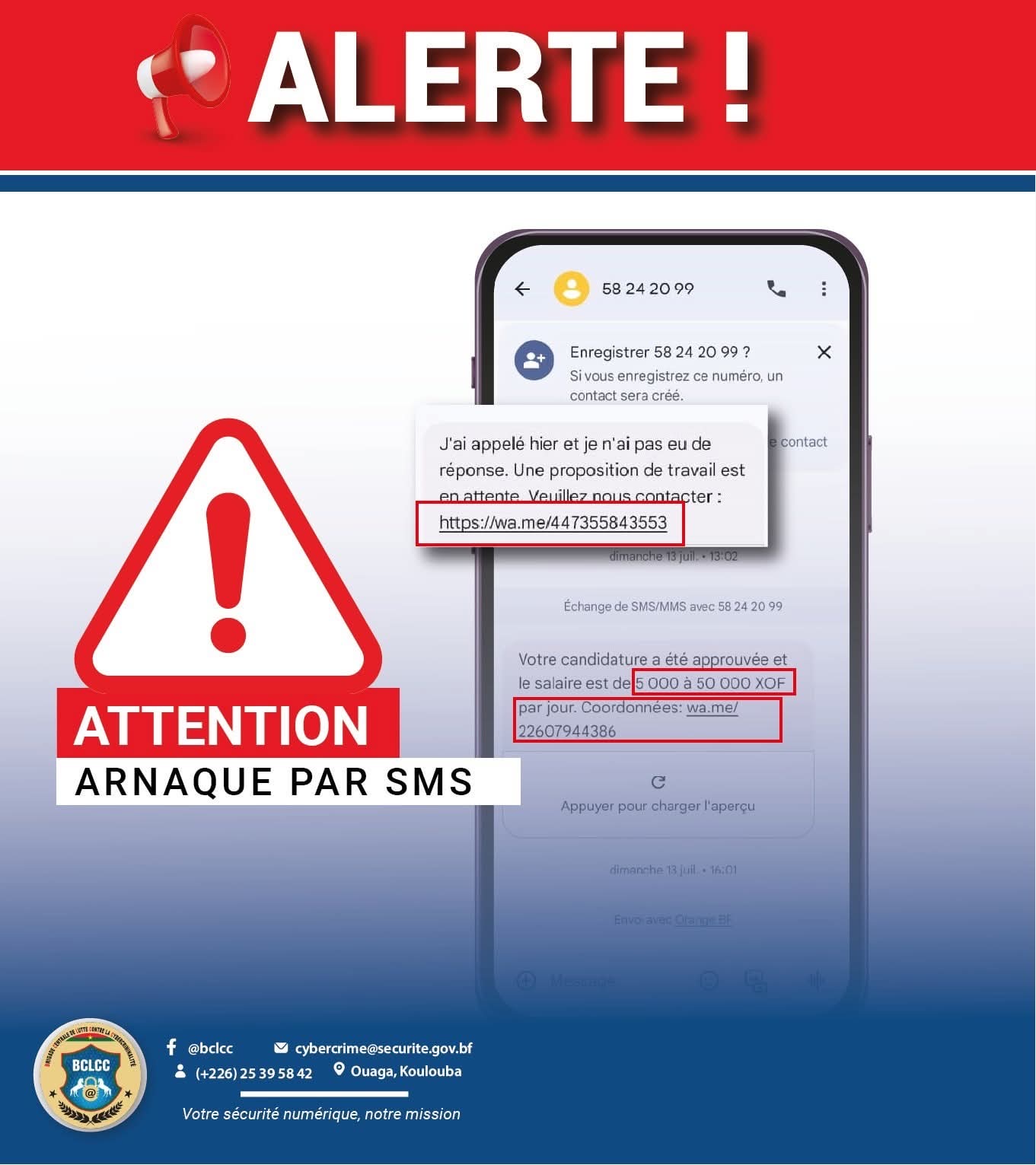 Burkina Faso : La BCLCC alerte sur une nouvelle vague d’arnaques par SMS liées à de fausses offres d’emploi