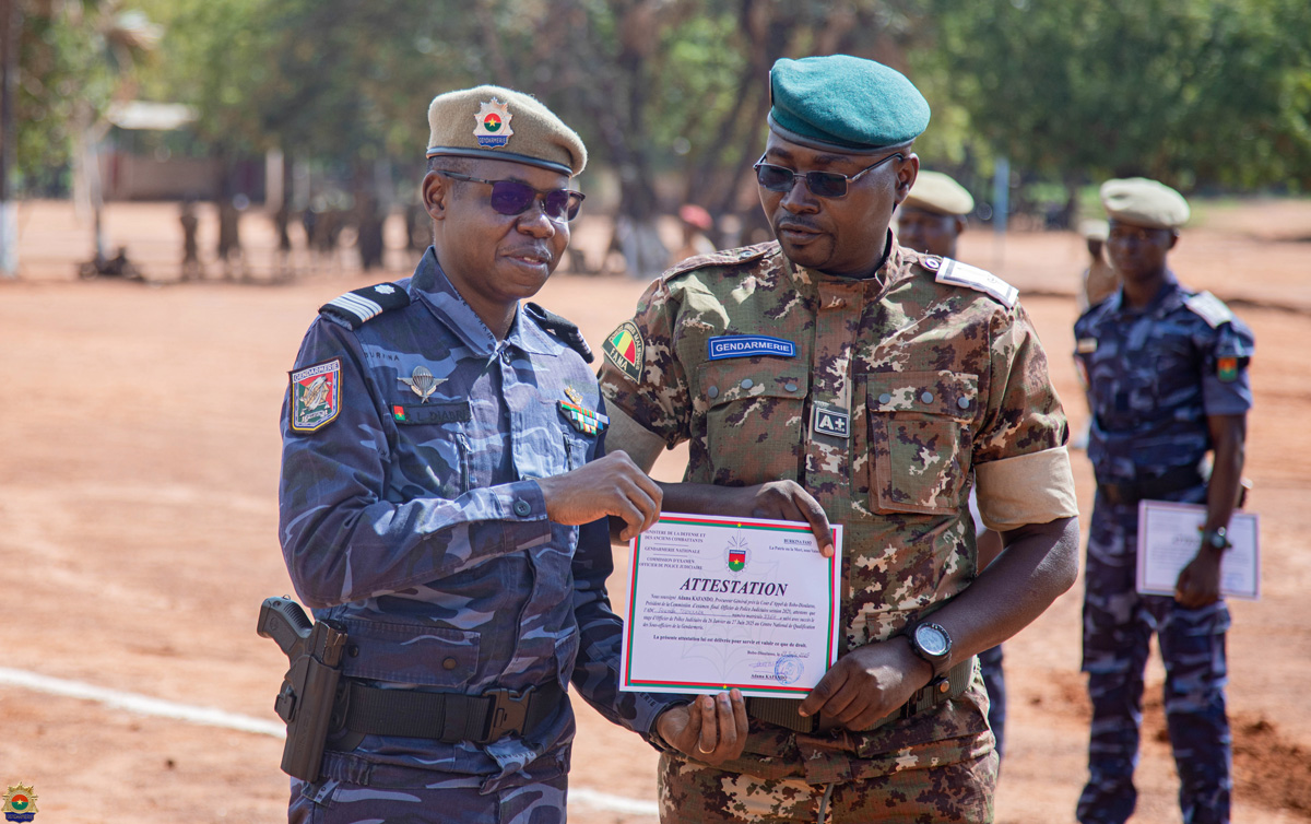 Placée sous la présidence du Colonel Koagri NATAMA, Chef d’État-major de la Gendarmerie Nationale, cette cérémonie qui s’est voulue sobre et symbolique a connu la présence d’autorités militaires, paramilitaires, judiciaires, administratives, coutumières et religieuses. La cérémonie a été essentiellement marquée par une prise d’armes, des allocutions et la remise solennelle des attestations de fin de stage aux impétrants.