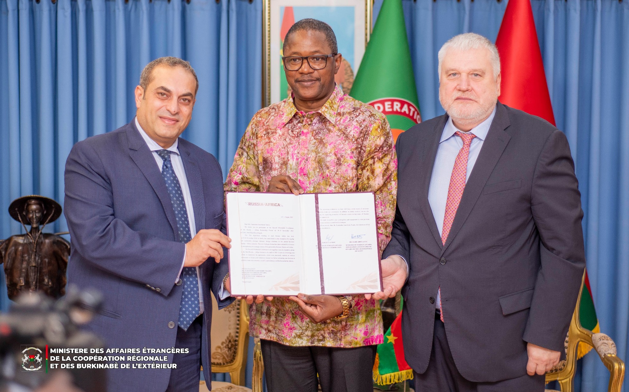 Ils sont tous les deux venus apporter l’invitation officielle conjointe des ministres des Affaires étrangères de la Russie SEM Sergueï LAVROV, et de la République Arabe d’Egypte SE Dr Badr ABDELATY à leur homologue burkinabè,  à prendre part à la 2e conférence ministérielle du Forum de partenariat Russie-Afrique, qui se tiendra en novembre 2025 au Caire.