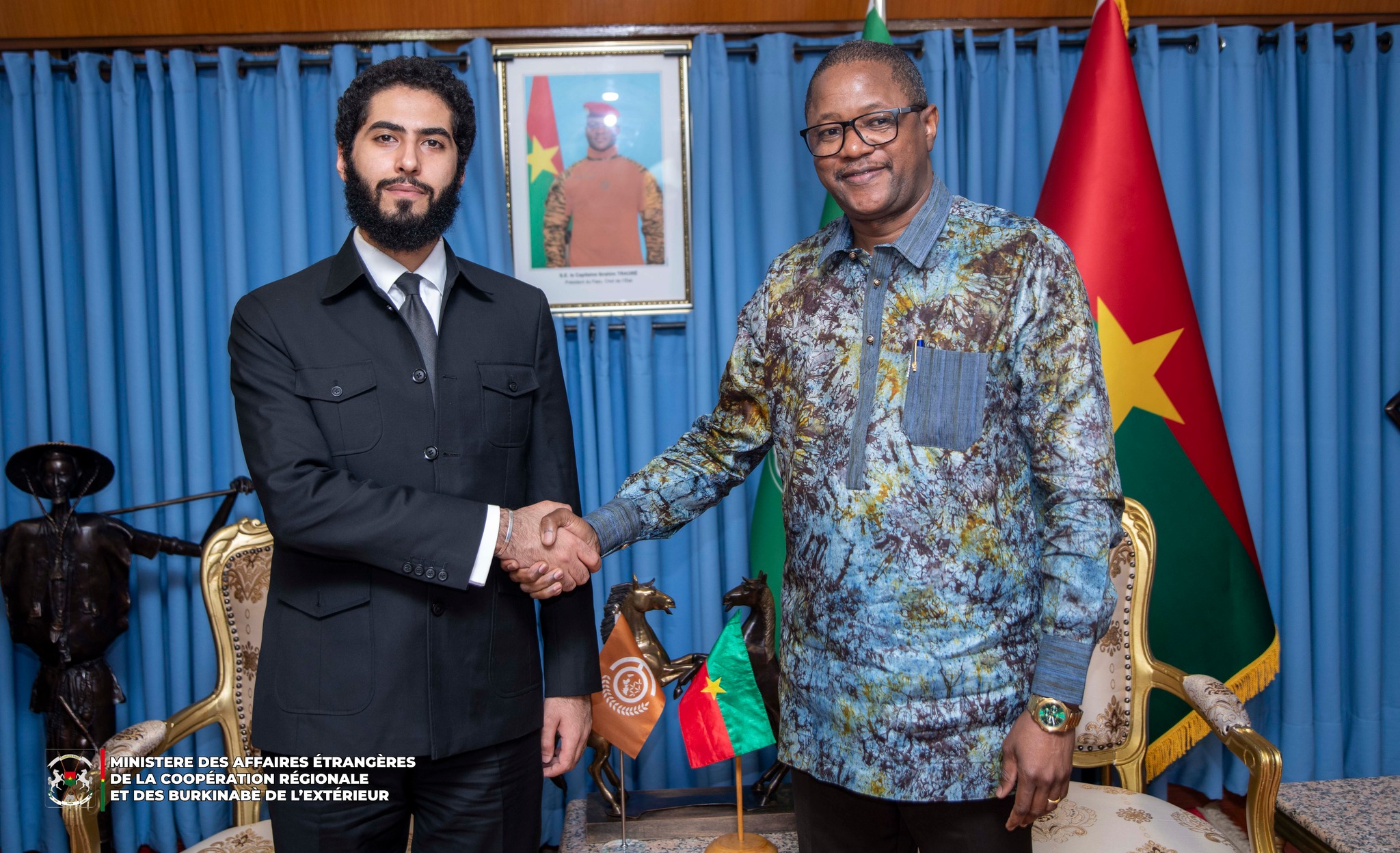 (Ouagadougou, le 15 juillet 2025) Le ministre des Affaires étrangères, de la Coopération régionale et des Burkinabè de l’Extérieur, Karamoko Jean Marie TRAORE, a reçu, ce 14 juillet 2025, une mission de l’Organisation de Coopération du Sud (OCS) conduite par son Secrétaire Général. Manssour BIN MUSSALAM et sa délégation effectuent une visite au Burkina Faso pour présenter l’organisation et susciter l’accompagnement des autorités burkinabè.